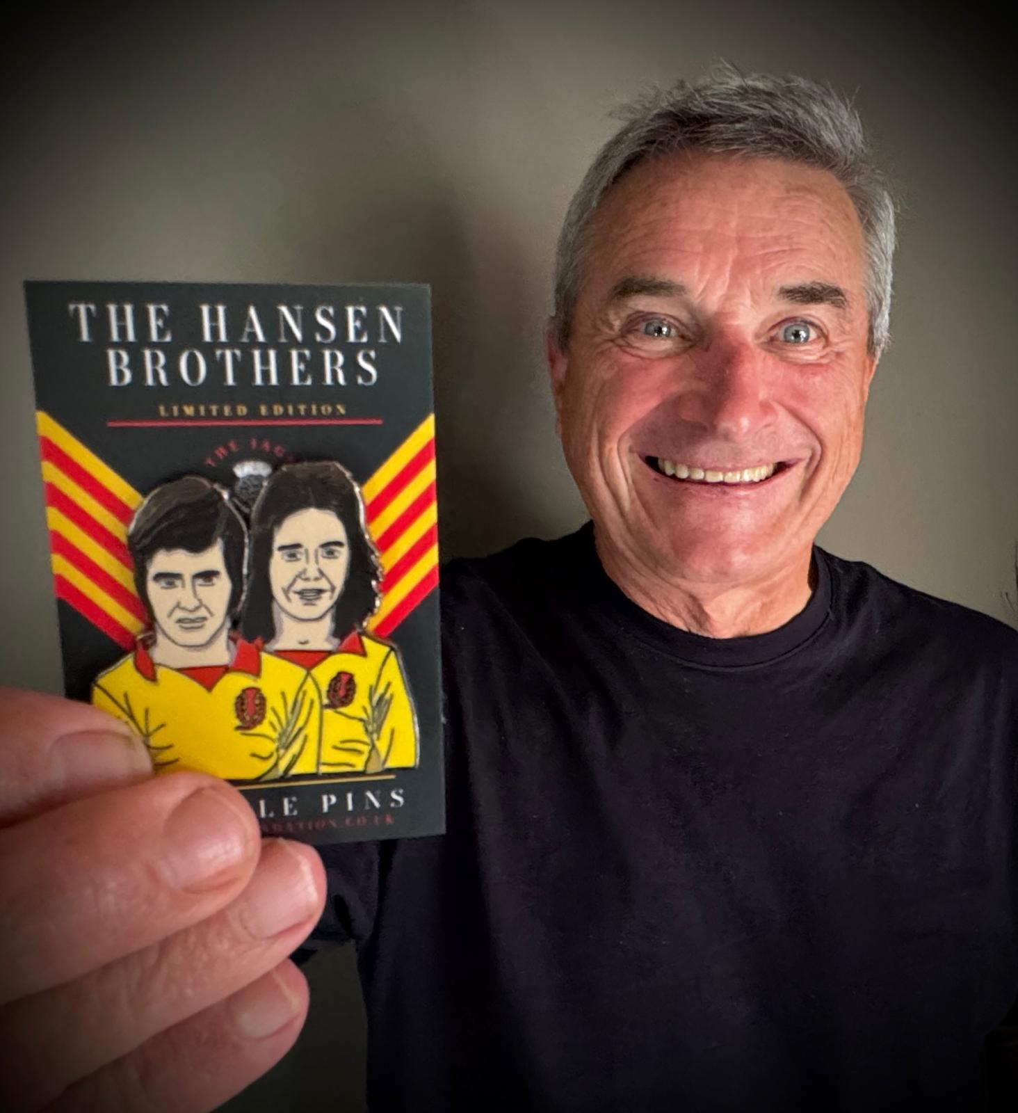 No wonder Jags legend and Hall-of-Famer John Hansen is smiling. Along with wee brother Alan he’s been immortalised as the subject of The Jags Foundation’s latest Limited Edition Thistle Pin. It’s their twenty-fifth.