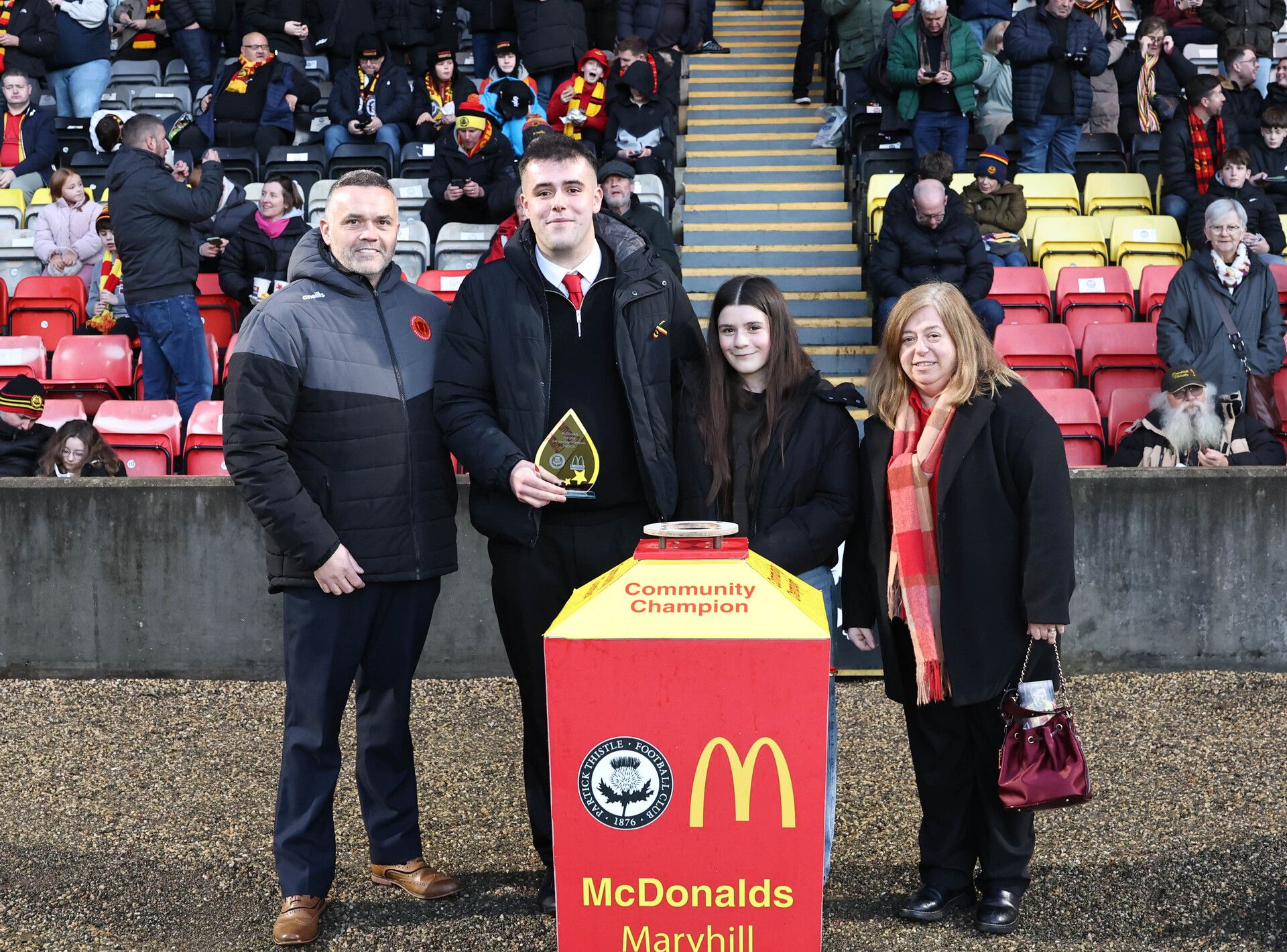 During half-time in Saturday's win at the Wyre Stadium at Firhill over St Johnstone we were delighted to view the presentation of the latest McDonald’s Maryhill Community Champion Award to Aiden Toner from the Partick Thistle Charitable Trust.