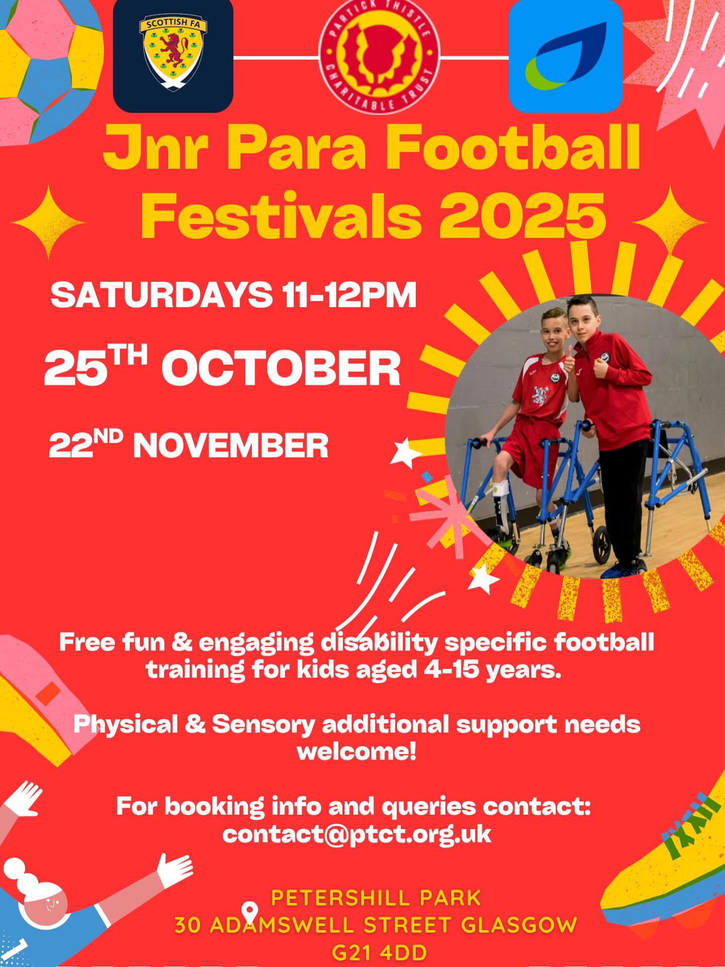 The Junior Para Festival returns this Saturday, 25th October between 11-12pm. It is a free, engaging, disability specific football session open to kids aged 4-15 year-old.