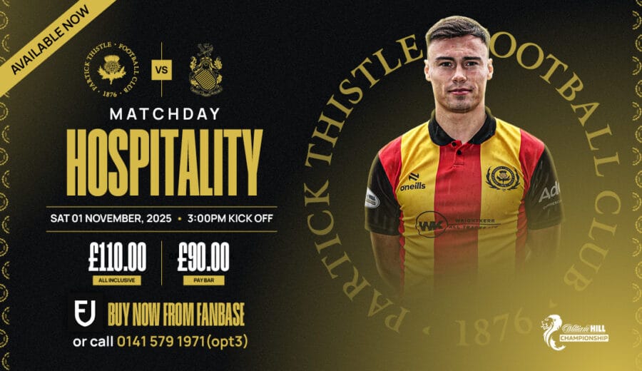 Our next home game is on Saturday, November 1 and you forget all the ‘horrors’ from the previous night’s Halloween by coming along to our Match Day Hospitality at the Wyre Stadium at Firhill when Queen’s Park pitch up on William Hill Championship Duty.